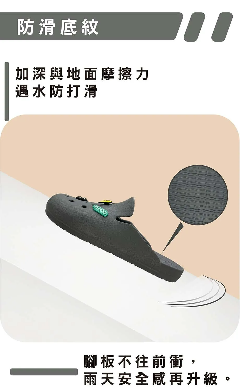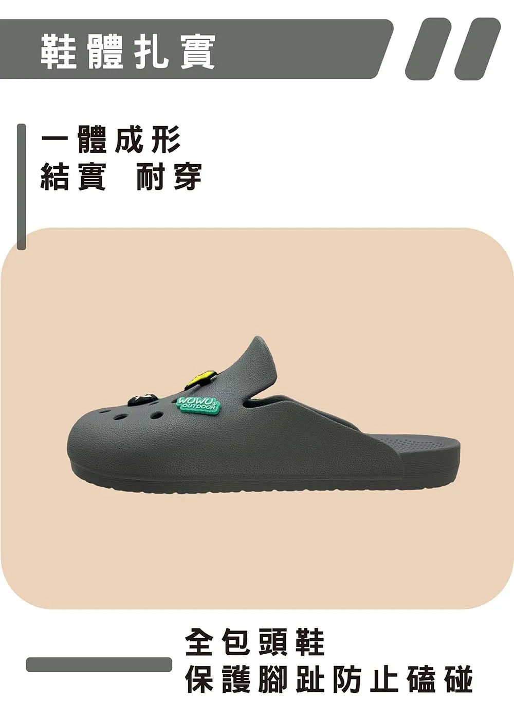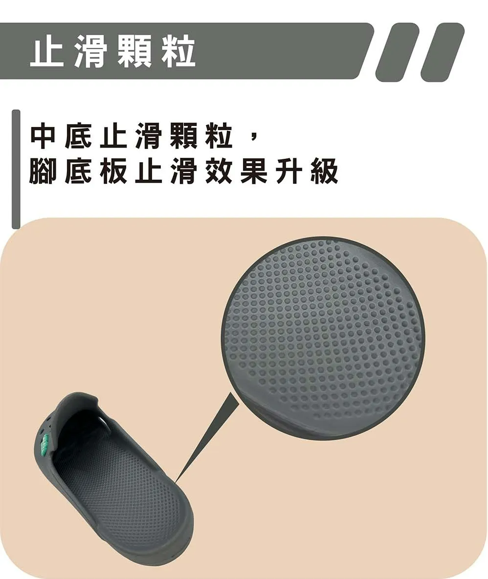 洞洞結構保持腳部透氣,無論居家、外出買東西或短時間活動都舒適。